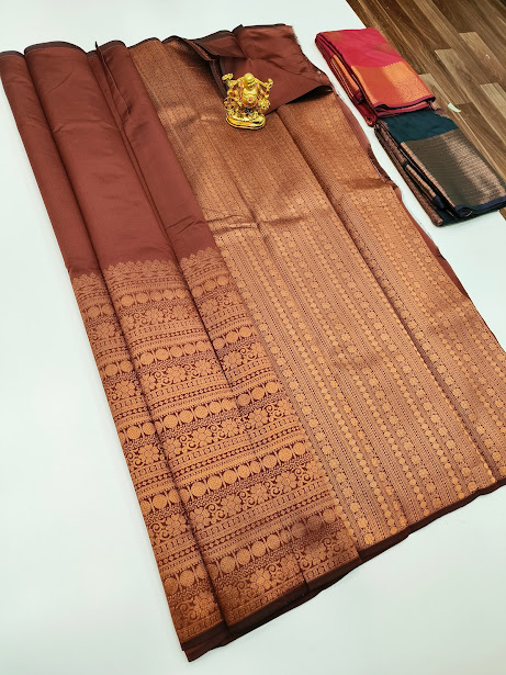 High Fancy Kanjivaram Silk Saree Mix Brown Color w/ Blouse