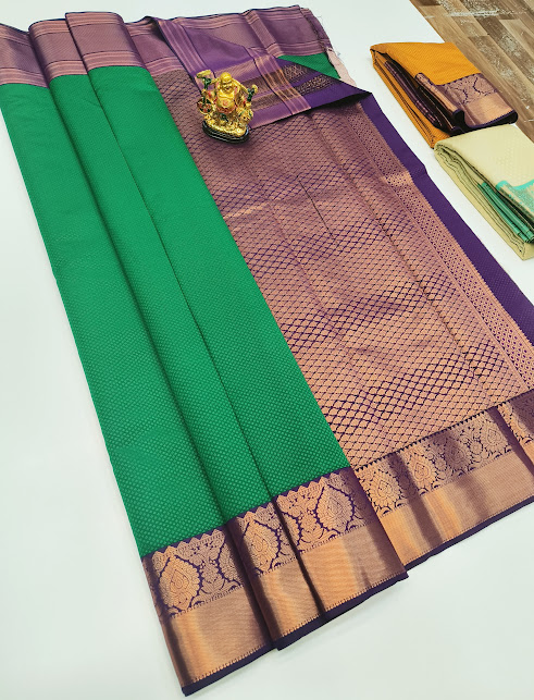 High Fancy Kanjivaram Silk Saree Mix Green Color w/ Blouse