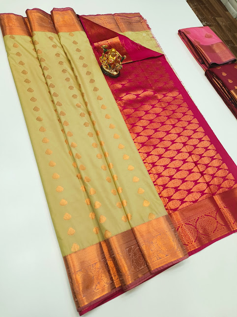 High Fancy Kanjivaram Silk Saree Mix Light Green Color w/ Blouse