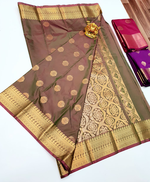 High Fancy Kanjivaram Silk Saree Mix Mango Leaf Color w/ Blouse