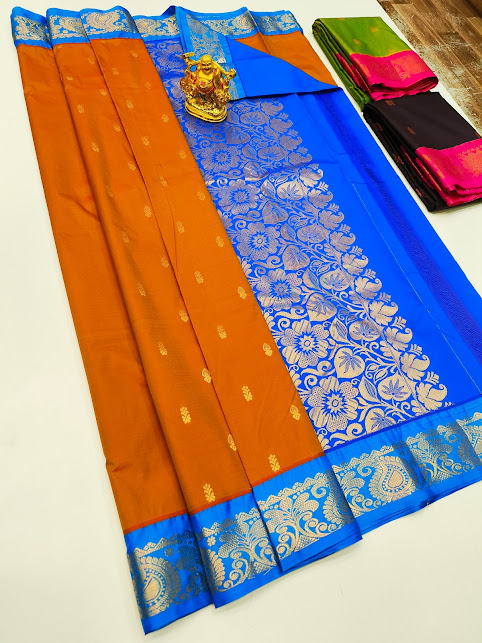 High Fancy Kanjivaram Silk Saree Mix Mustard Color w/ Blouse