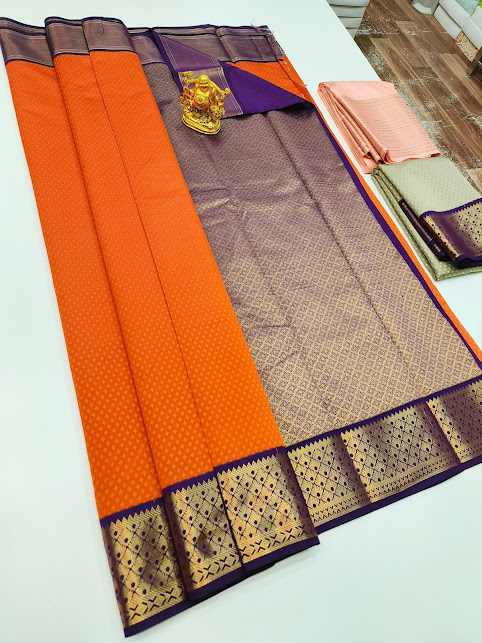 High Fancy Kanjivaram Silk Saree Mix Orange Color w/ Blouse