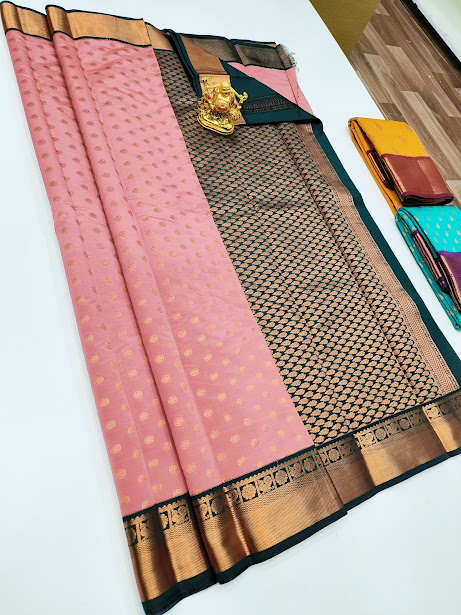 High Fancy Kanjivaram Silk Saree Mix Peach Color w/ Blouse