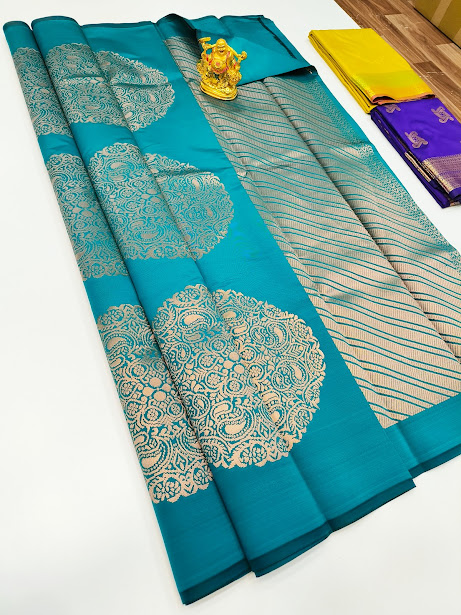 High Fancy Kanjivaram Silk Saree Mix Rama Blue Color w/ Blouse