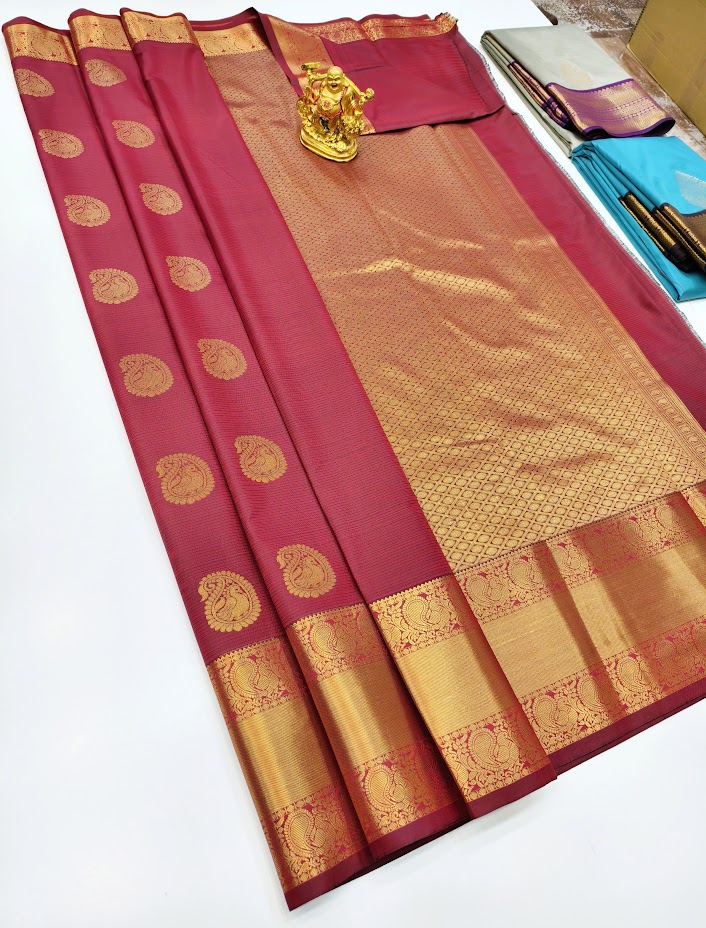High Fancy Kanjivaram Silk Saree Mix Red Color w/ Blouse