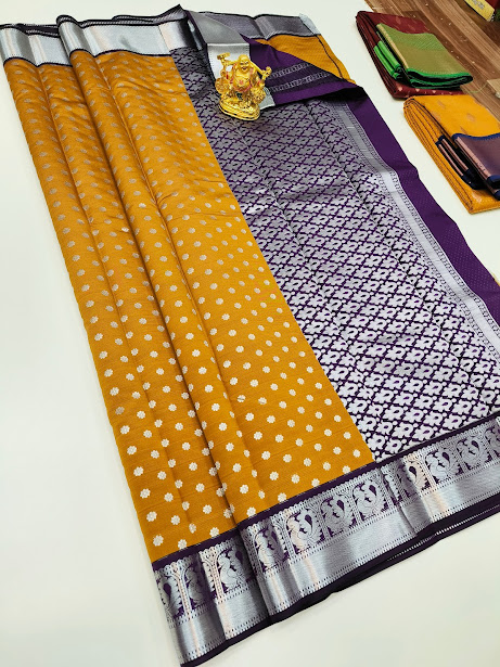High Fancy Kanjivaram Silk Saree Mix Yellow Color