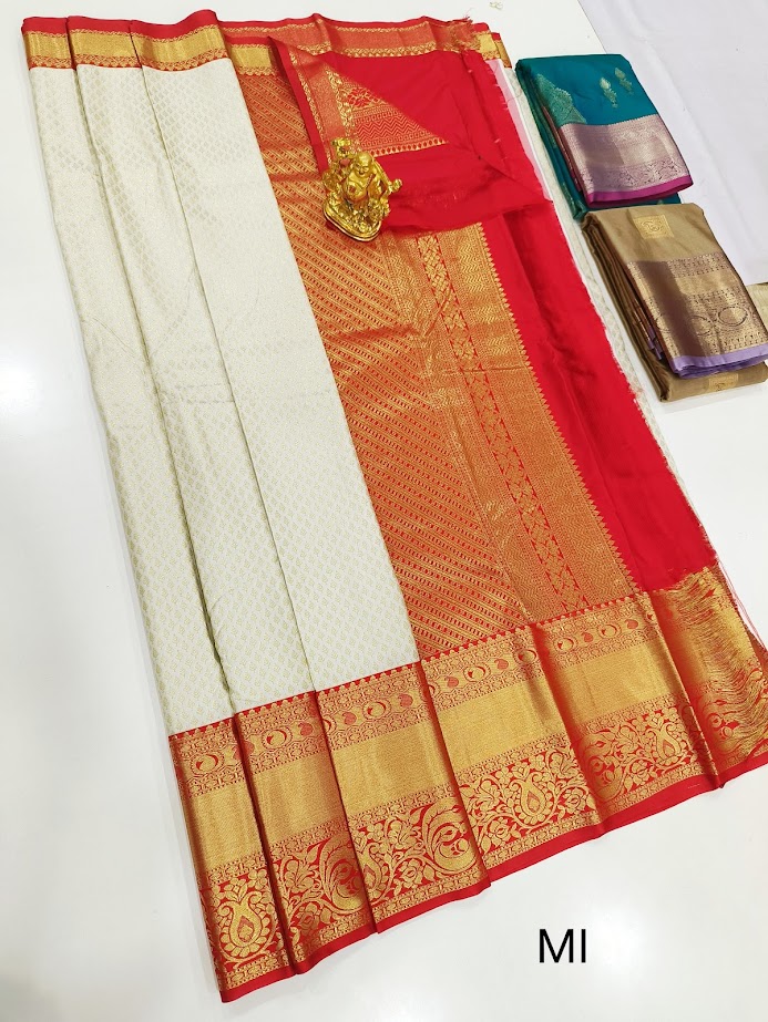 New Design Kanchi Semi Silk Saree White Color w/ Blouse