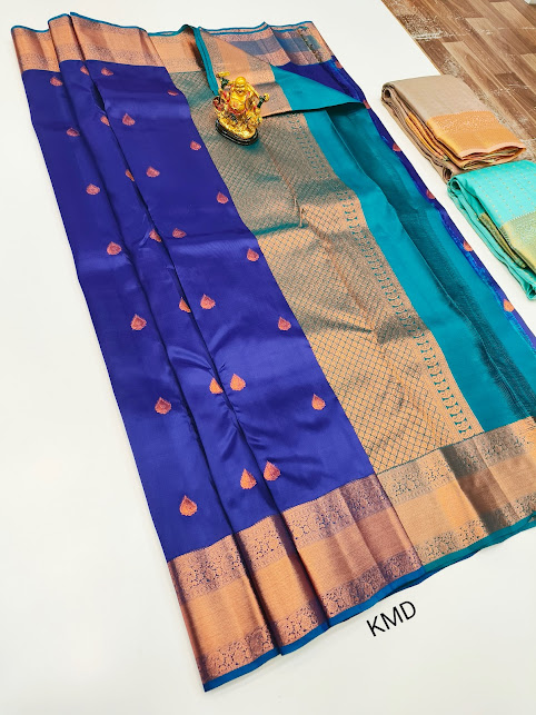 K.M.D Soft 75% Pure Silk Saree Blue Color w/ Blouse