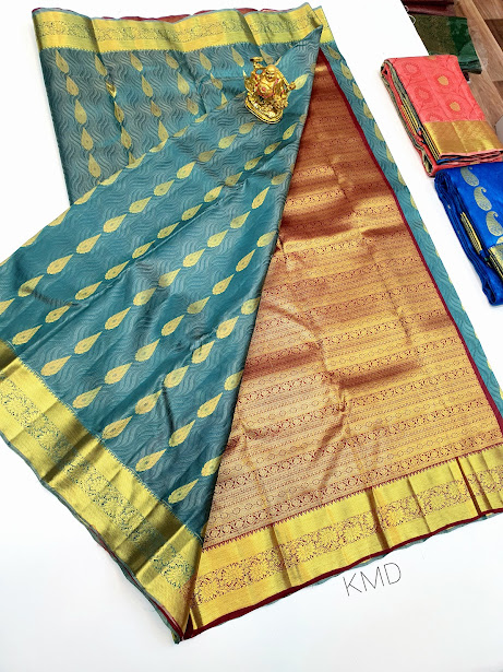 K.M.D Soft 75% Pure Silk Saree Copper Blue Color w/ Blouse