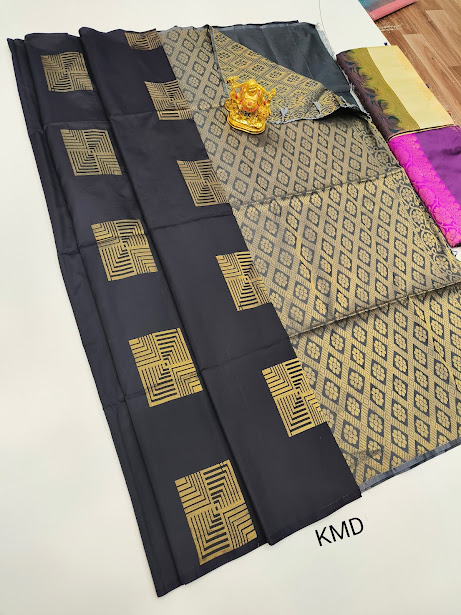 K.M.D Soft 75% Pure Silk Saree Elephant Gray Color w/ Blouse