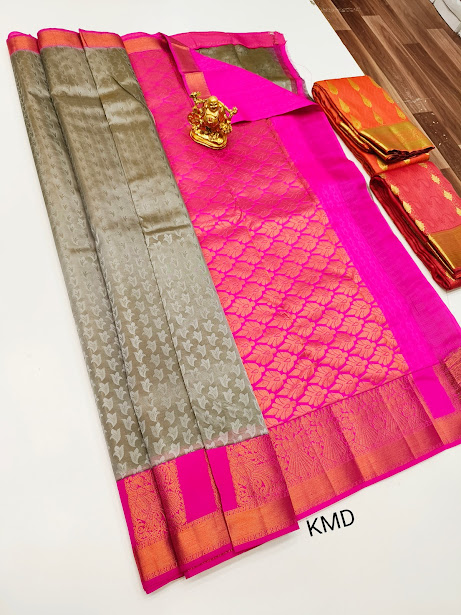 K.M.D Soft 75% Pure Silk Saree Gray Color w/ Blouse