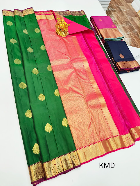 K.M.D Soft 75% Pure Silk Saree Green Color w/ Blouse