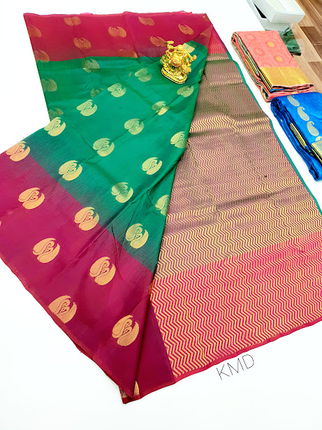 K.M.D Soft 75% Pure Silk Saree Green Color w/ Blouse