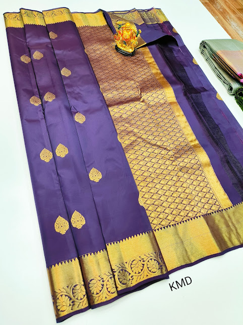 K.M.D Soft 75% Pure Silk Saree Ink Blue Color w/ Blouse