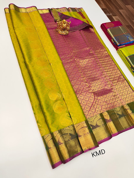 K.M.D Soft 75% Pure Silk Saree Lemon Green Color w/ Blouse