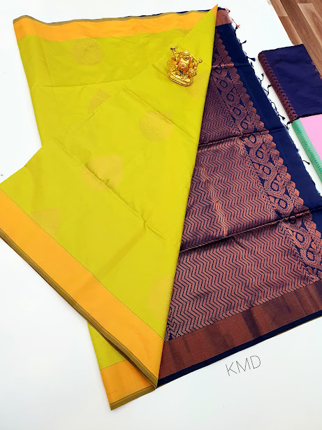 K.M.D Soft 75% Pure Silk Saree Lemon Yellow Color w/ Blouse
