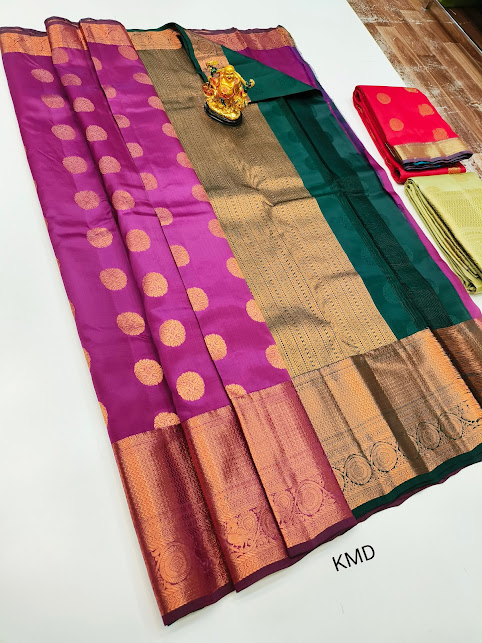 K.M.D Soft 75% Pure Silk Saree Magenta Color w/ Blouse