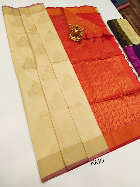 K.M.D Soft 75% Pure Silk Saree Off White Color w/ Blouse