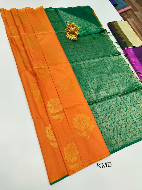 K.M.D Soft 75% Pure Silk Saree Orange Color w/ Blouse
