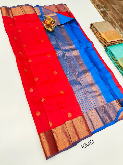 K.M.D Soft 75% Pure Silk Saree Red Color w/ Blouse