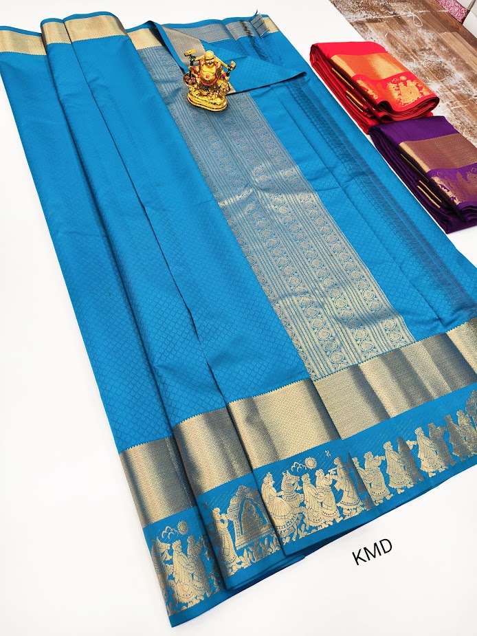 K.M.D Soft 75% Pure Silk Saree Sky Blue Color w/ Blouse