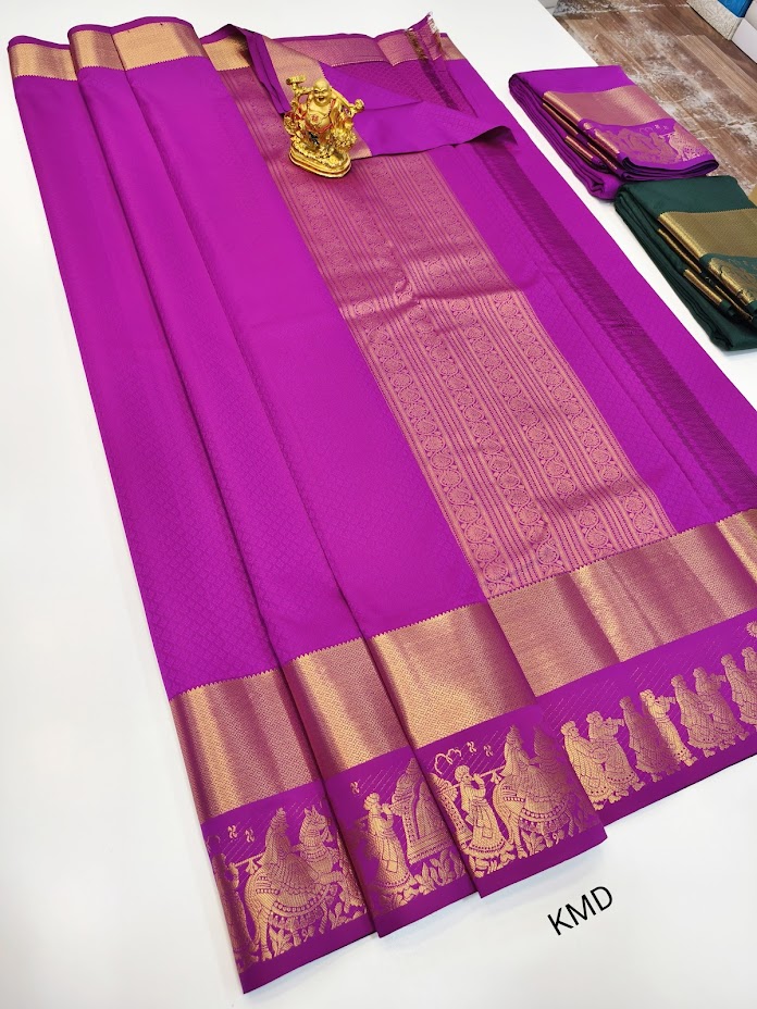 K.M.D Soft 75% Pure Silk Saree Violet Color w/ Blouse