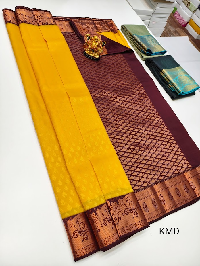 K.M.D Soft 75% Pure Silk Saree Yellow Color w/ Blouse