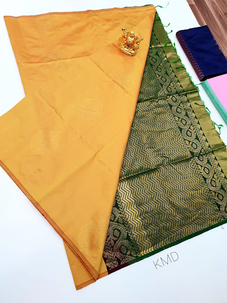 K.M.D Soft 75% Pure Silk Saree Yellow Color w/ Blouse
