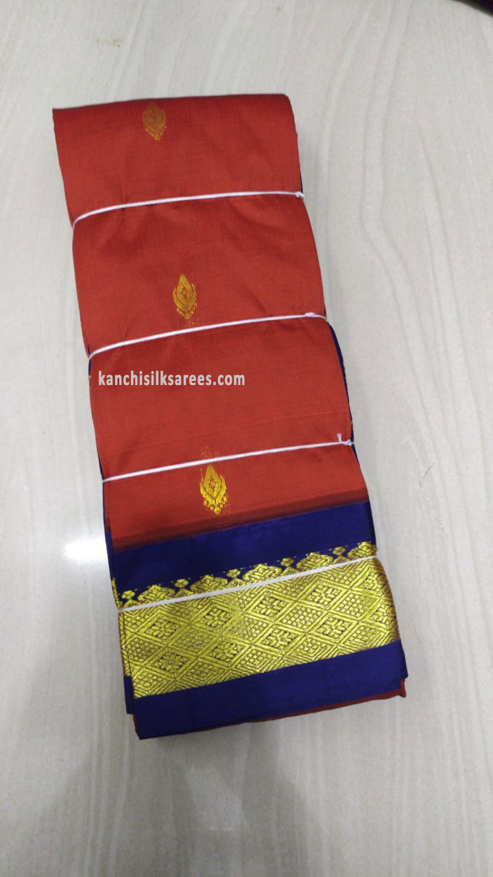 Kanchi Gift Silk Sarees One Side Border Small Flower Design Scarlet Red w/ Blue Color
