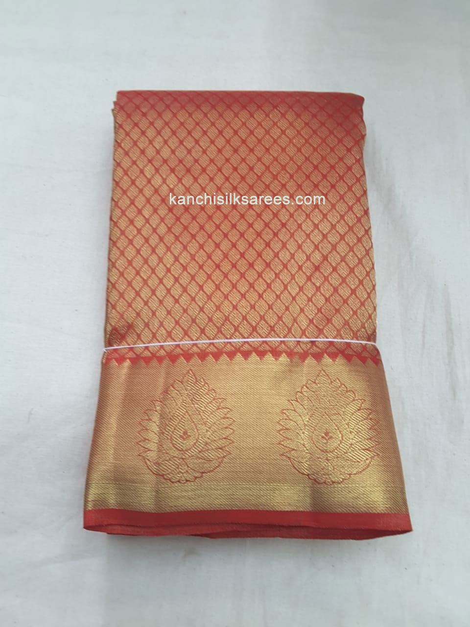 Kanchi Pure Handloom Pattu Sarees Dymond Design Apple Red w/ Gold Zari Color