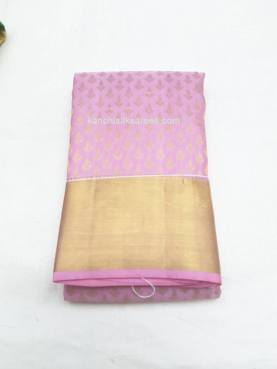 Kanchi Pure Handloom Pattu Sarees Flower Design Ballet Slipper Pink w/ Gold Zari Color