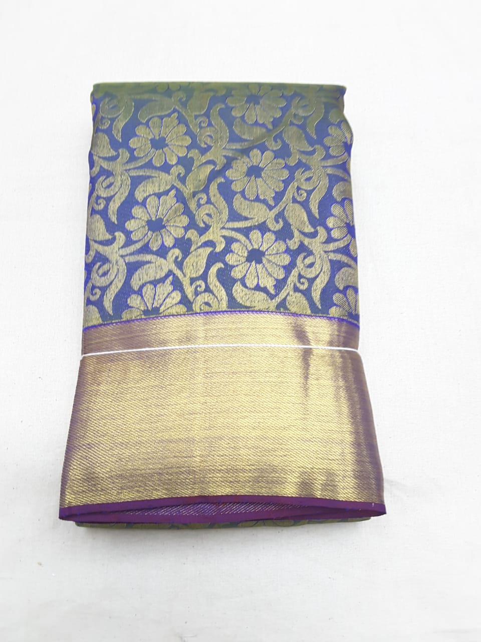 Kanchi Pure Silk Sarees Flower Design Dark Berry Blue Color and Full Zari Work