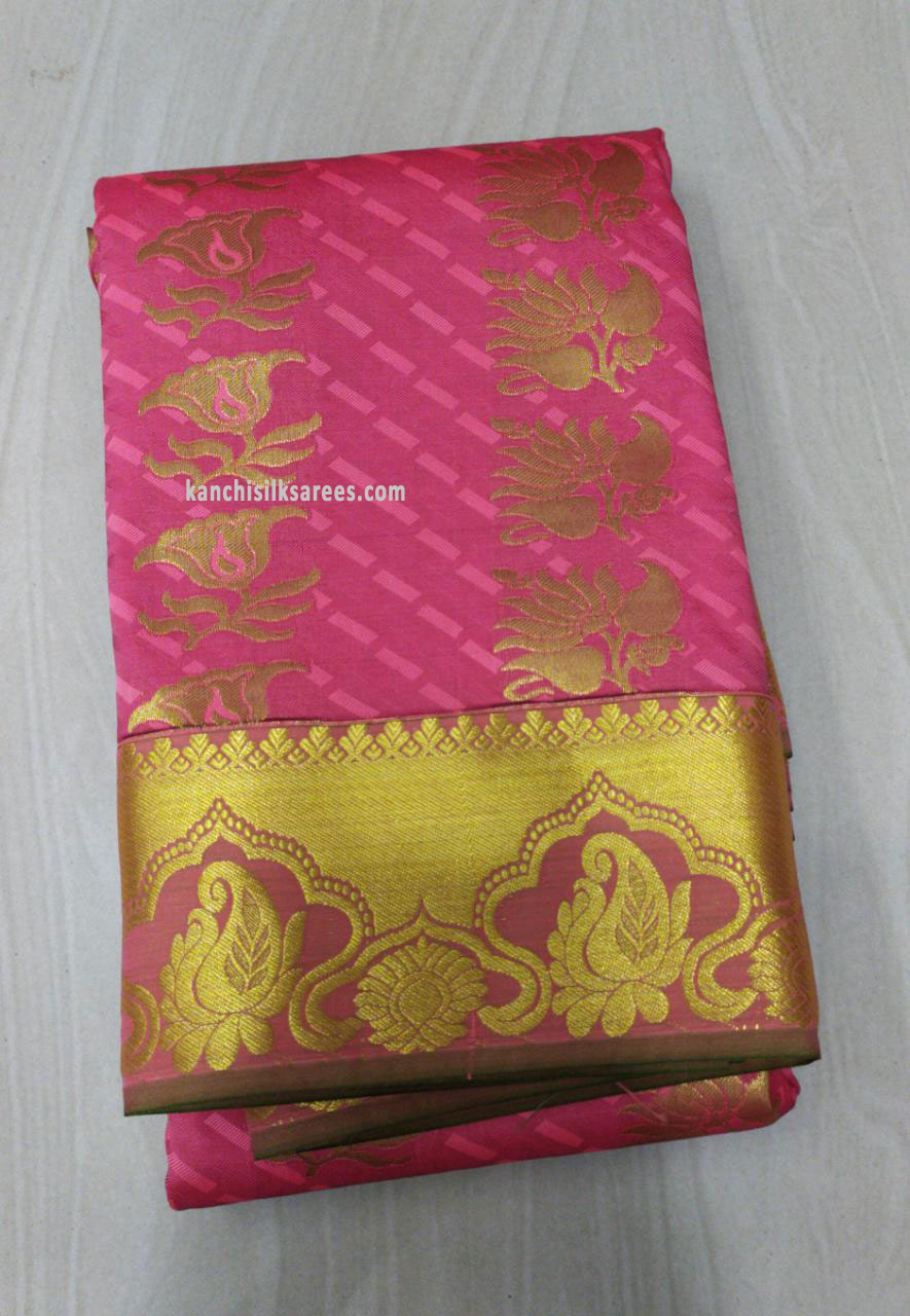 Kanchi Silk Gift Sarees Flower and Mango Design Punch Rose Color