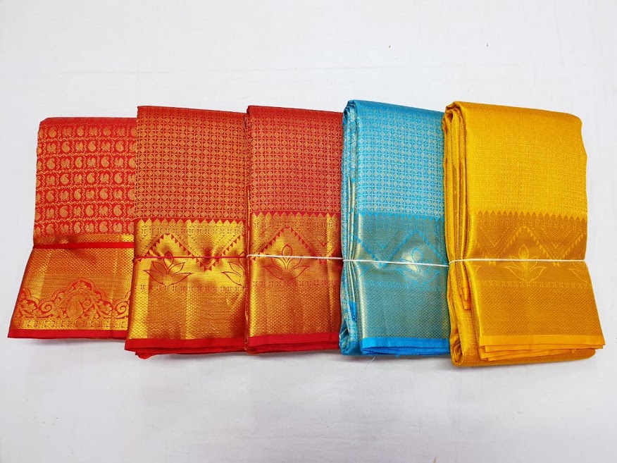 Whats App for Latest Sarees & DesignsSpecification: Kanchi Silk Saree Bridal Collection Checks Full Jari Work (Red / Chilli Red / Pink / Ramar Blue / Yellow)