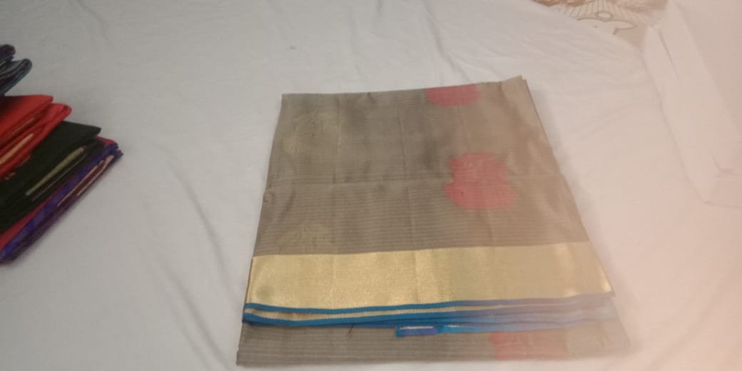 Gift sarees can be ordered online for Kanchi Soft silks with Cement and Blue joint only at Kanchi Silk sarees.