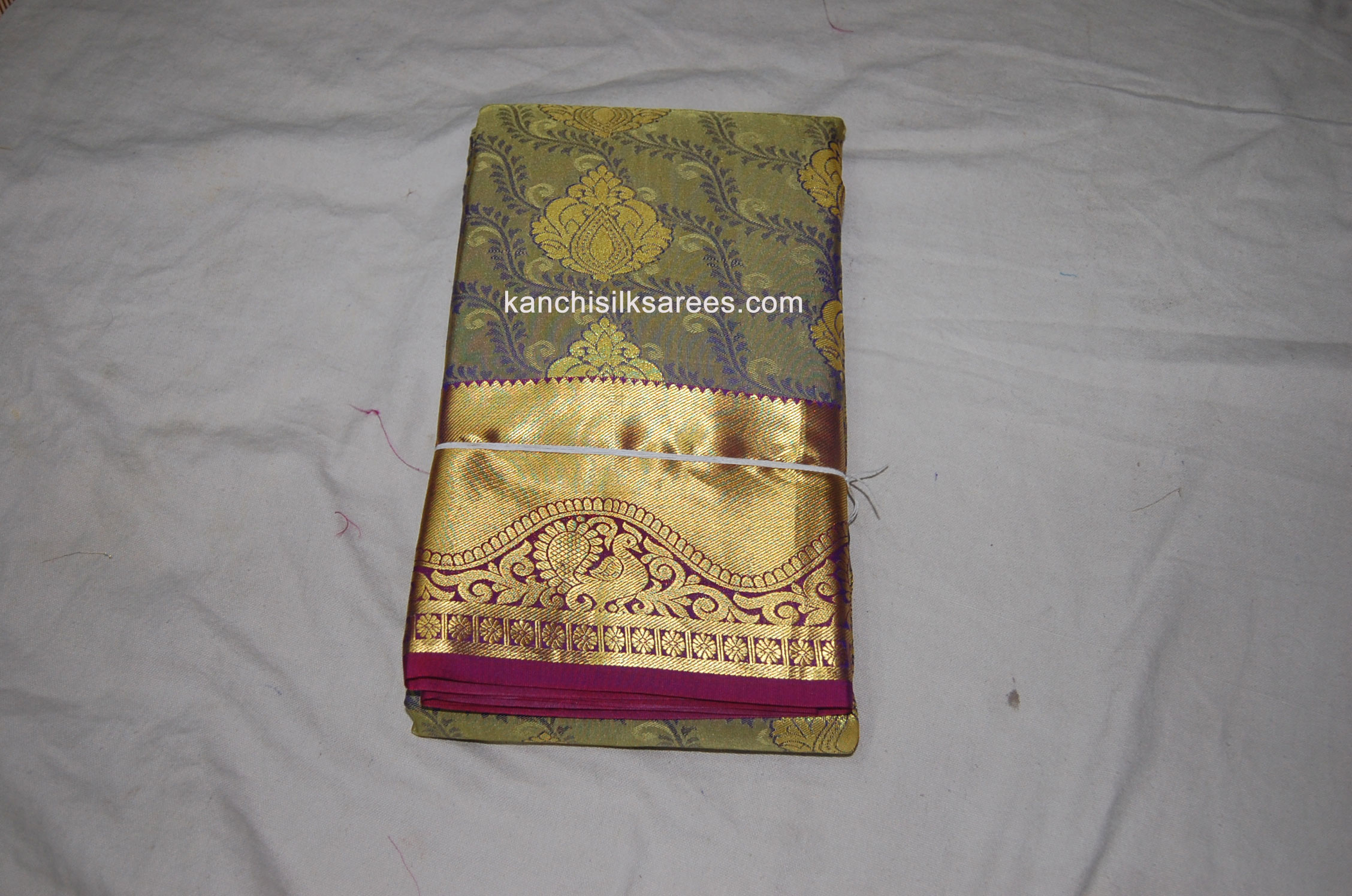Kanchi Soft Silk Sarees Peacock and Mango Flower Design Mustard Yellow w/ Pompadour Purple Color