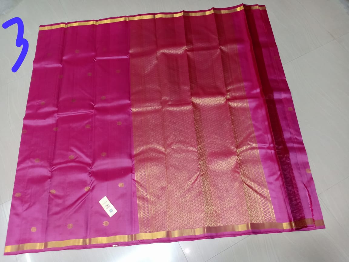 Kanchi Soft Silk Sarees Putta Design Jazzberry Jam Pink w/ Small Zari Border Color