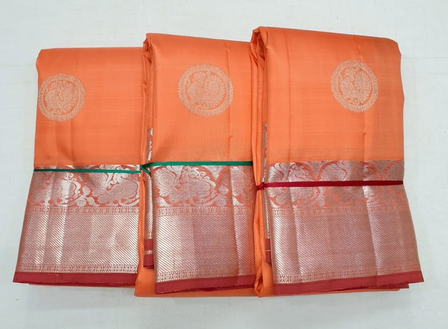 Kanchi Trendy Silk Saree Annam Design Big Border Orange w/ Apple Red Color