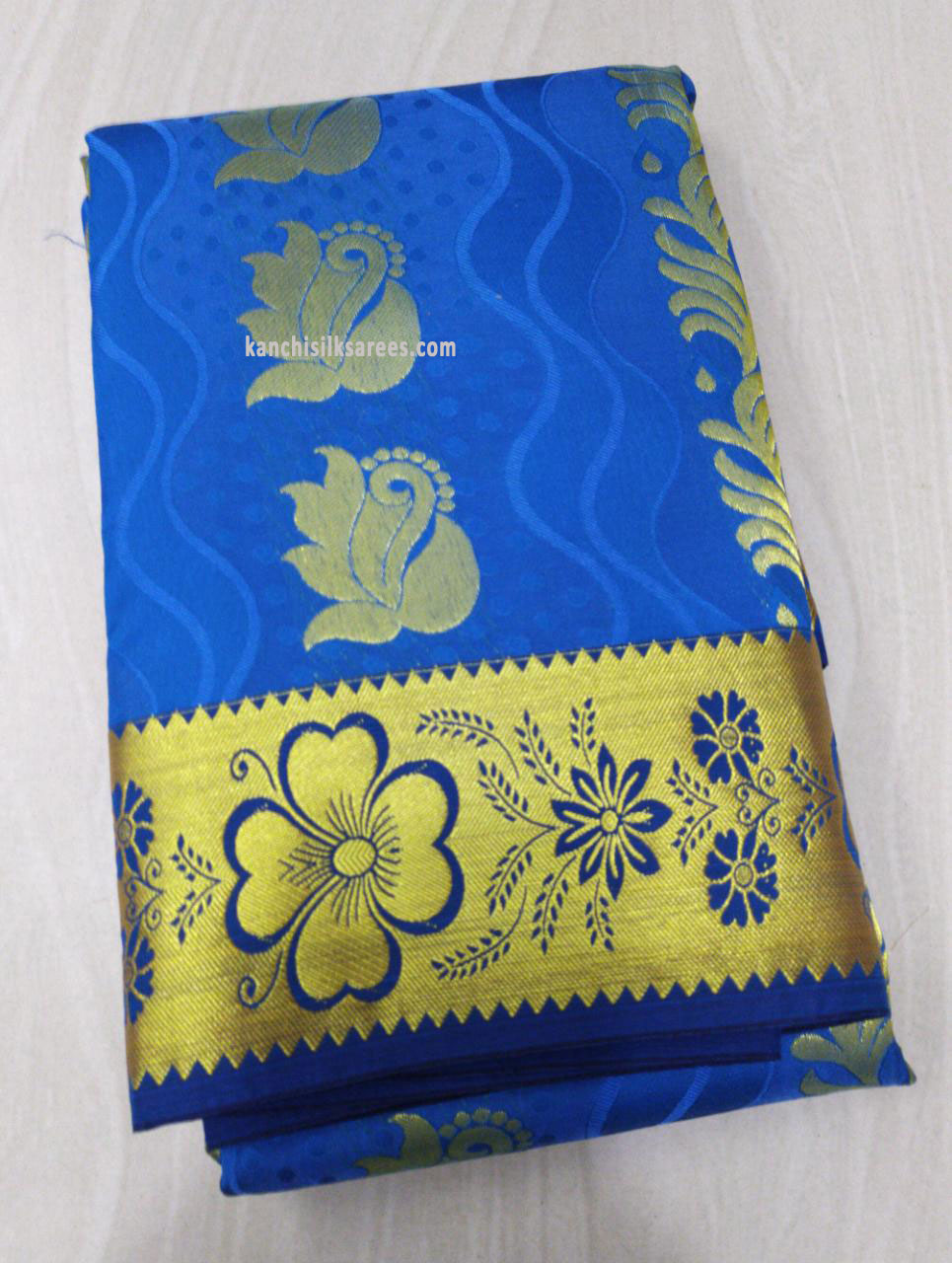 Kanchipuram Gift Silk Sarees Different Flower Design Cobalt Blue Color