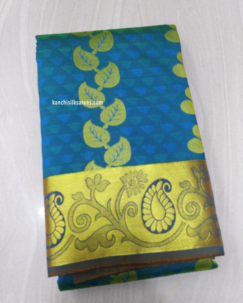 Kanchipuram Gift Silk Sarees Leaves and Mango Design Ocean Blue Color