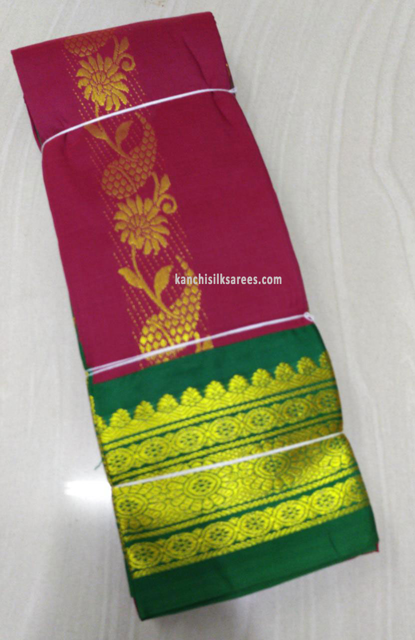 Kanchipuram Gift Silk Sarees One Side Border Mango Design Magenta /w Green Color