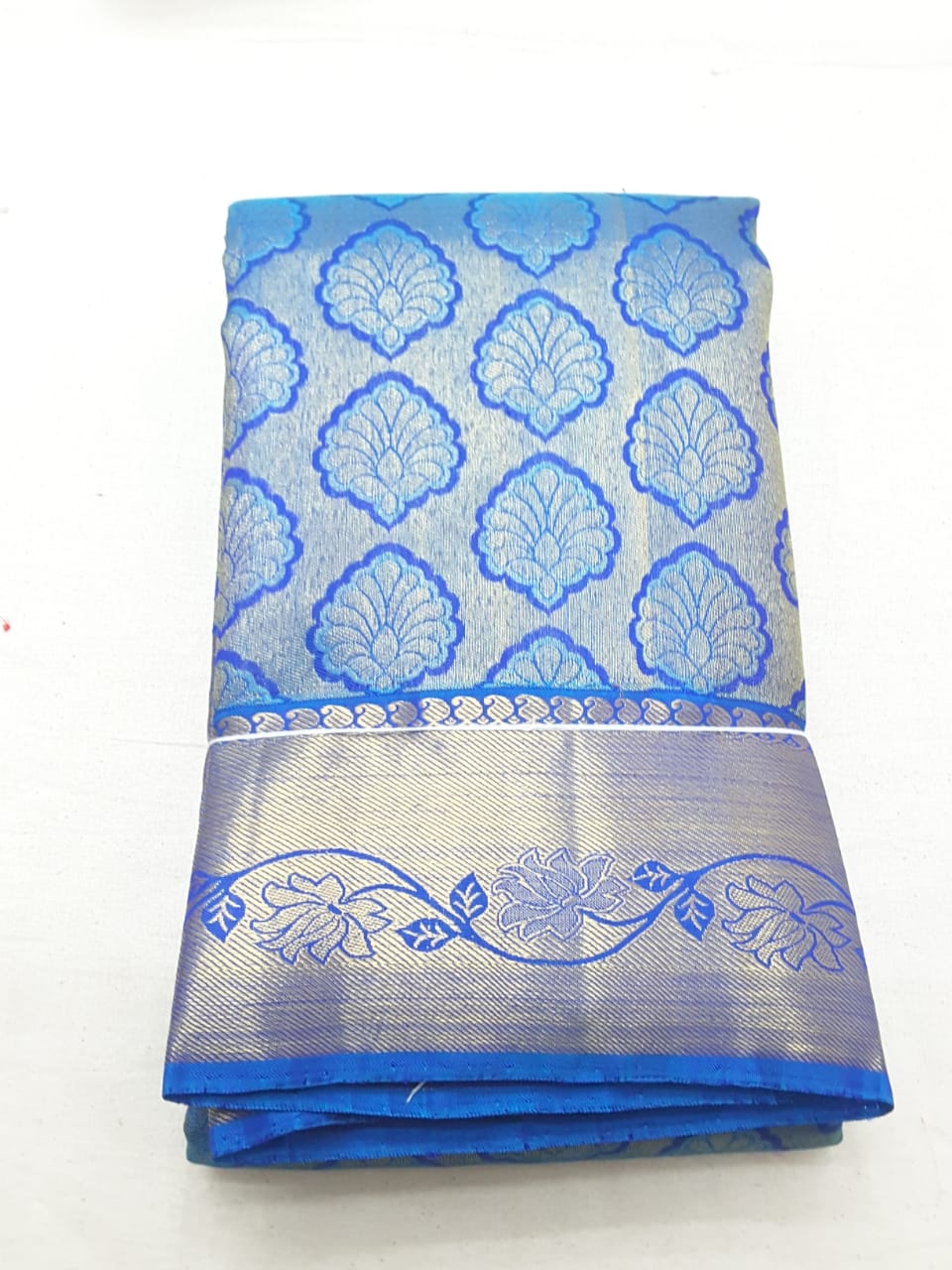 Whats App for Latest Sarees & DesignsMighty and Denim blue combined on Golden Zari border from Kanchi Silk Sarees with Original Pattu and Pallu customized design.