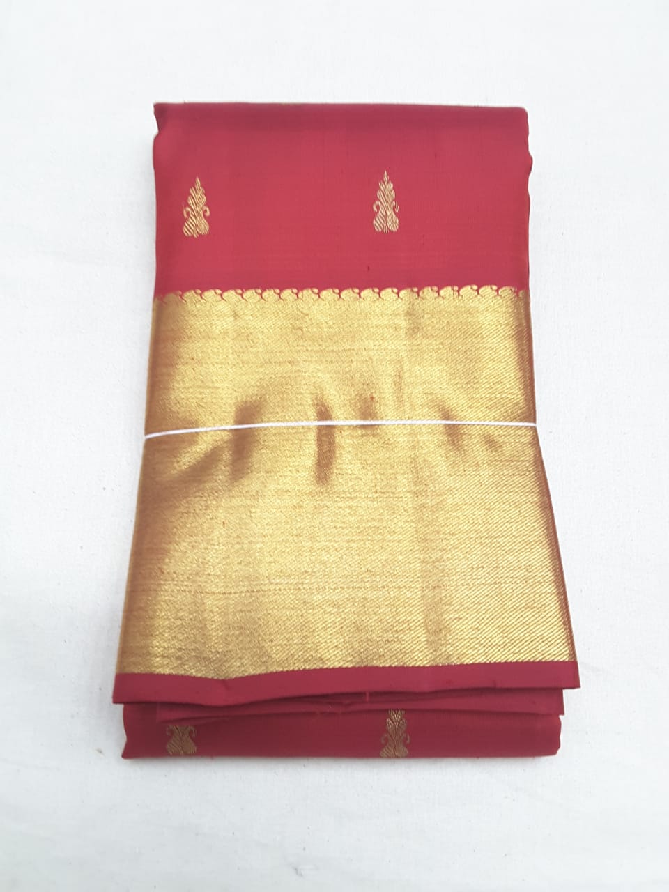 Kanchipuram Pure Silk Sarees Small Mango Design Kumkum Red Color Full Gold Zari Border
