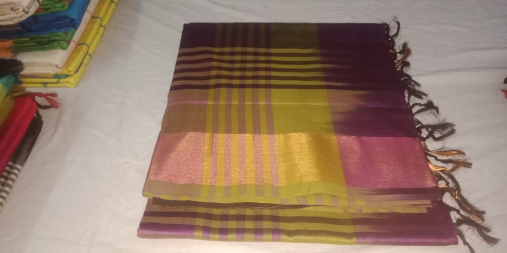 Green and Purple mixed Checks Semi Silk Cotton saree from Kanchipuram weavers at your doorstep with Hot sale and offers.