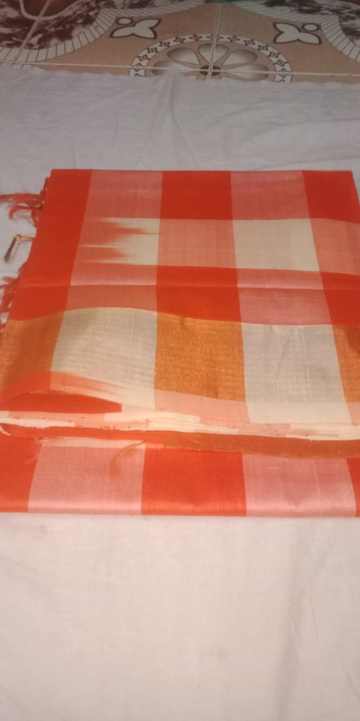 Check out the Orange and Sandal Semi Silk Cotton sarees with Box all through the body to make it beautiful to wear on a simple occasion.