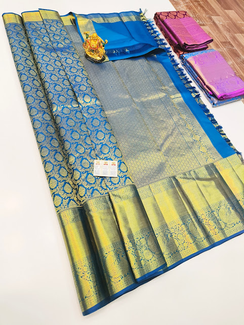 Kanjivaram Pure Wedding Silk Saree Blue Color w/ Blouse