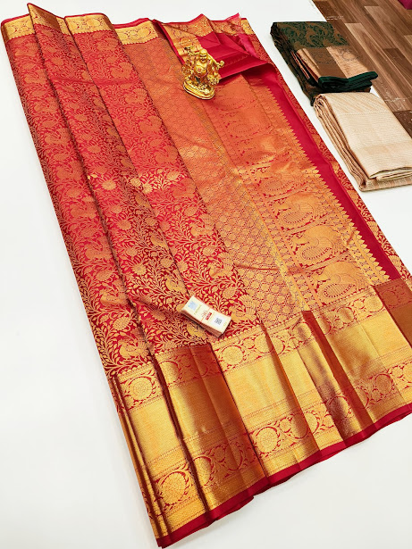 Kanjivaram Pure Wedding Silk Saree Chilli Red Color w/ Blouse