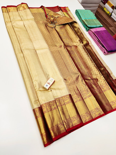 Kanjivaram Pure Wedding Silk Saree Cream White Color w/ Blouse