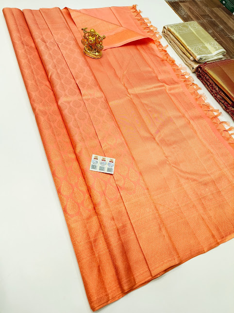 Kanjivaram Pure Wedding Silk Saree Fanta Orange Color w/ Blouse