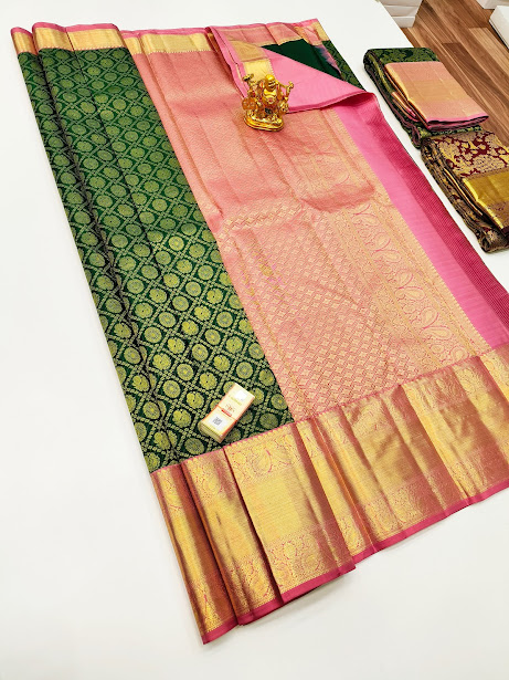 Kanjivaram Pure Wedding Silk Saree Green Color w/ Blouse